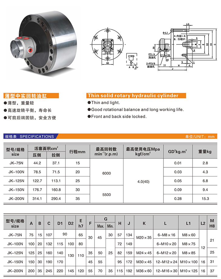 JK 薄型中實(shí)回轉(zhuǎn)油缸